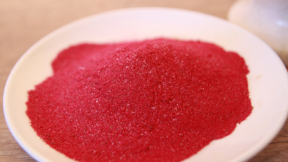 Koncentrat z soku z buraków, mąka pszenna, sól, olej roślinny palmowy, substancja przeciwzbrylająca dwutlenek krzemu, hydrolizat białka roślinnego, regulator kwasowości kwasek cytrynowy, glutaminian sodu, inozynian disodowy, guanylon disodowy, czosnek, liście palmowe, majeranek, pieprz czarny, ziele angielskie, aromat olej palmowy; alergeny: soja, może zawierać śladowe ilości selera, gorczycy, mleka, glutenu.
