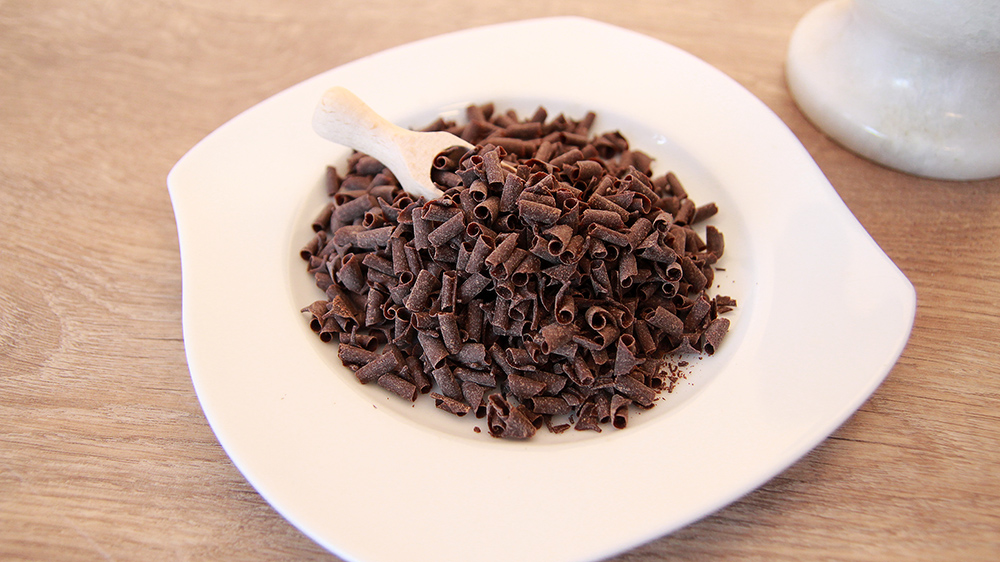 Niezwykła mieszanina proszku kakaowego, masła kakaowego i cukru. Zawiera około 70 % produktów z miazgi kakaowej. Ma doskonały zapach i wygląd. Płatki używane do dekoracji tortów, ciast i babeczek. Niezbędna w każdej kuchni, wzbogaca smak i wygląd każdego wypieku. Stosowana także jako dodatek do dań słonych. Dostępna również w opakowaniu o pojemności 1 kg.
