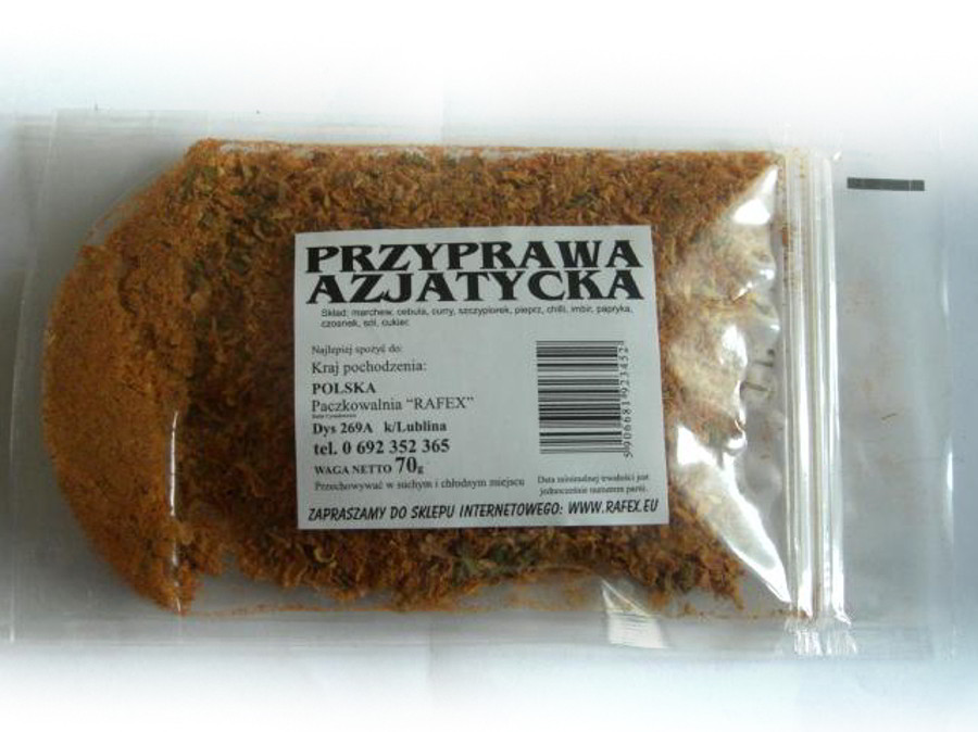 Kuchnia azjatycka cieszy się ostatnimi czasy coraz większym zainteresowaniem nie tylko wśród Europejczyków. Jej podstawą są wyraziste smaki, które uzyskuje się poprzez umiejętne szafowanie przyprawami. Doskonałe połączenie przypraw w mieszance azjatyckiej sprawia, że jest to produkt wyjątkowy i niepowtarzalny. Pełen składników odżywczych, których nie traci dzięki naturalnemu procesowi suszenia. Wyjątkowa przyprawa azjatycka do nabycia w opakowaniach o pojemności 70 g.