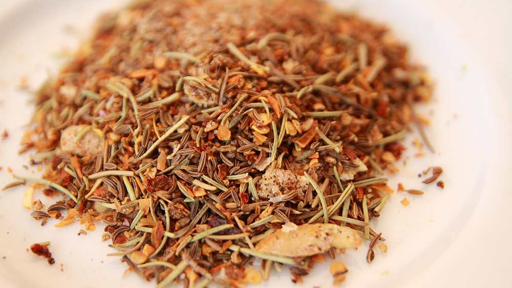 czosnek, cebula, chili grys, kmin rzymski, rozmaryn, sól, pieprz czarny, kminek
