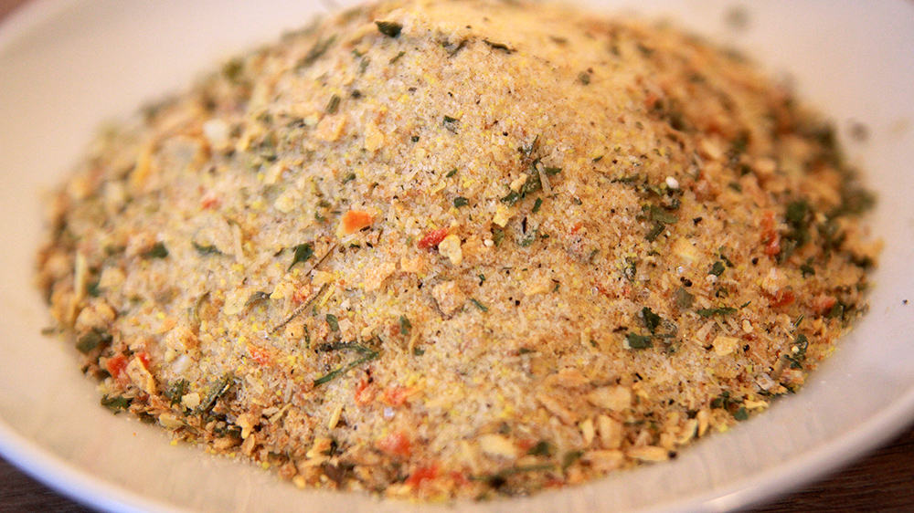 sól, wzmacniacz smaku i zapachu: glutamin sodu, izocyjanian disodowy, guanylan disodowy, tłuszcz z kury(0,02 %), cukier, regulator kwasowości: kwasek cytrynowy, olej roślinny palmowy, hydrolizat białka sojowego, maltodekstryna, kurkuma, pieprz czarny, aromaty: cebula, czosnek, marchew, pietruszka, pasternak, pietruszka nać, substancja przeciwzbrylająca: dwutlenek krzemu. Alergeny: soja.